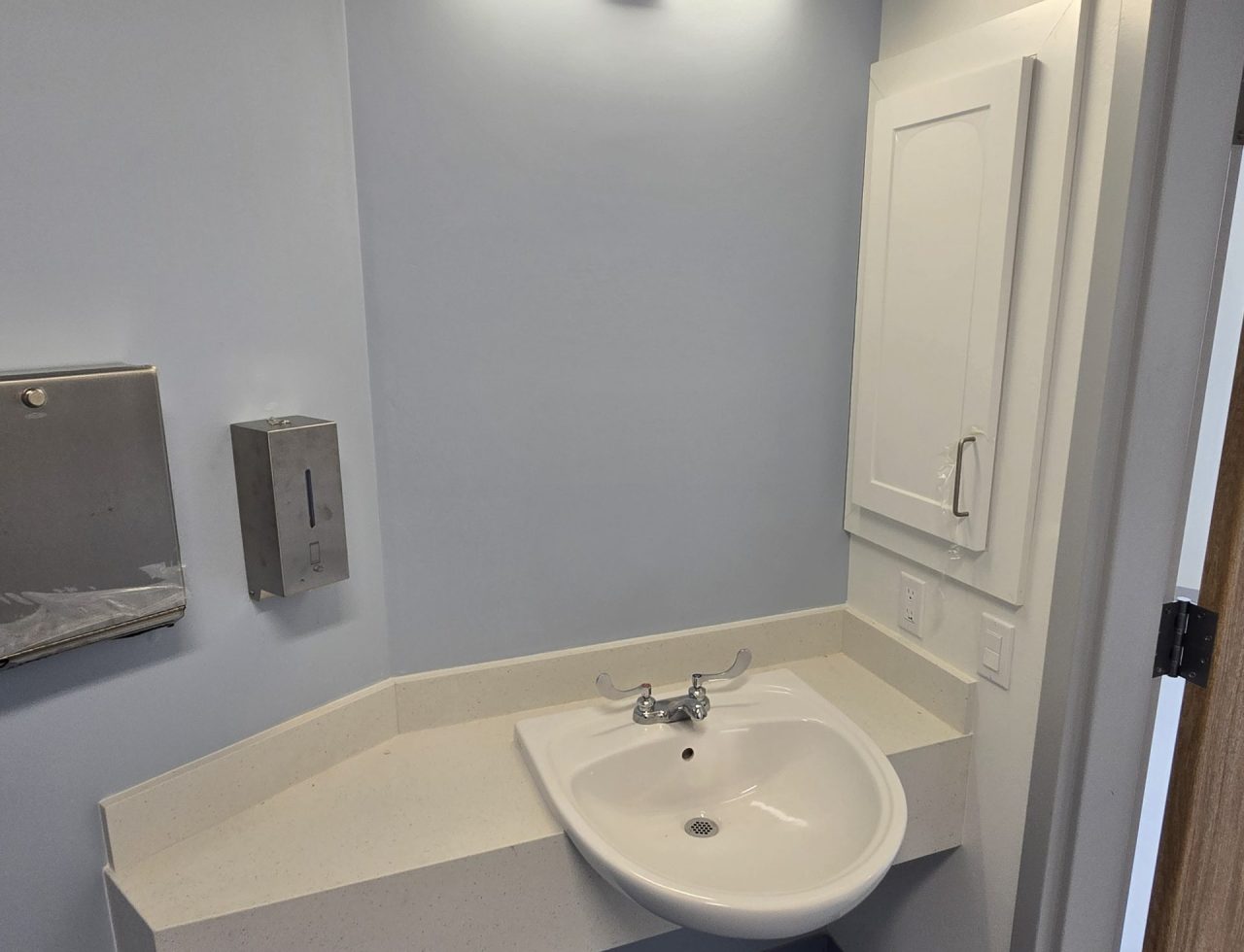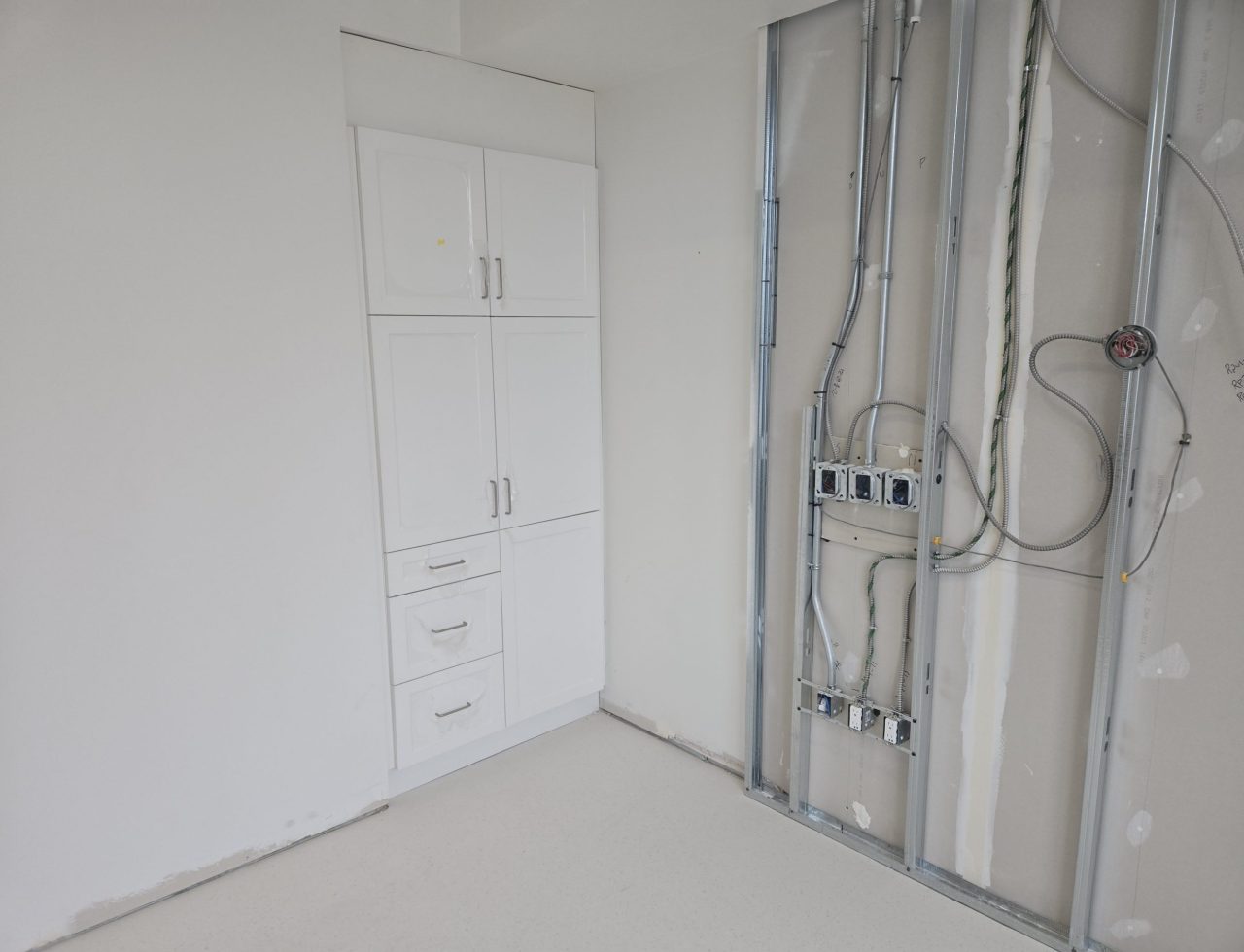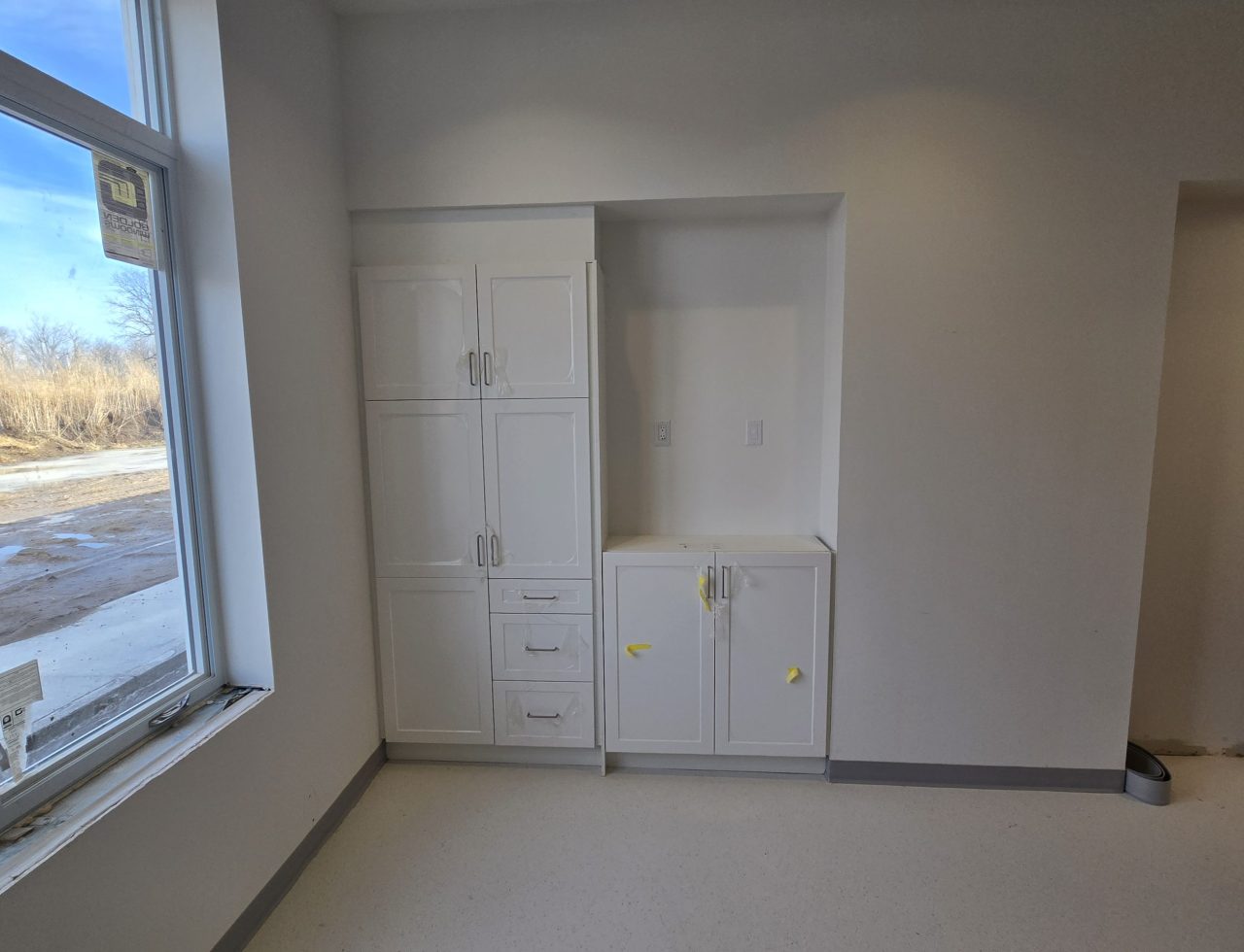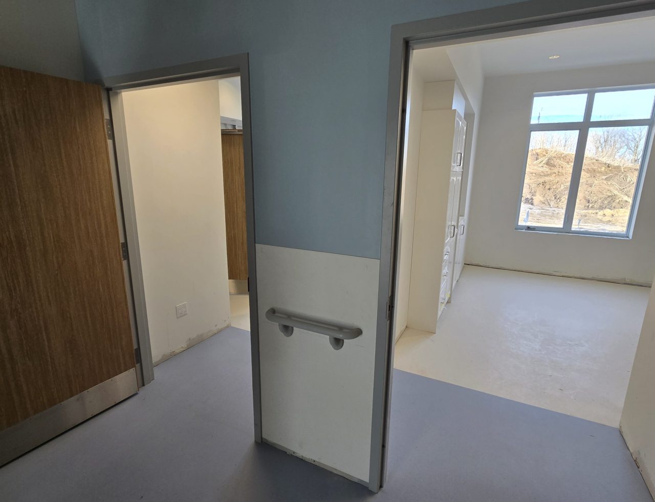 The new building is progressing along very nicely. The wooden decorator pieces have been added to the wall behind the bed in the resident bedrooms, and soon will be completed after the addition of the trim. The walls and ceiling features at the entrance have been carefully planned to give the facility a designer’s touch and home-like atmosphere. Babcock Community Care welcomes Margaret McCahon as their newest resident.