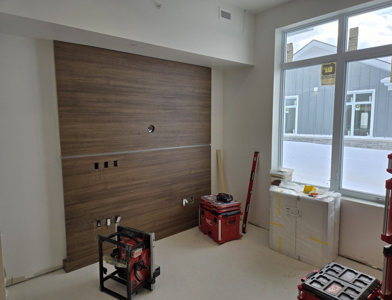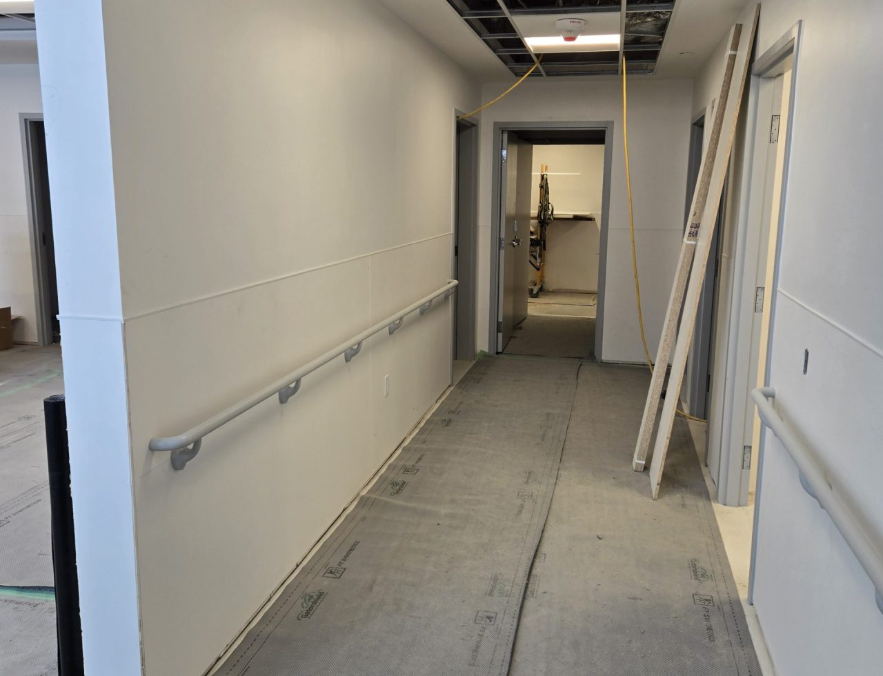 The contractors are working away on the new long-term care home. Flooring installation and wall preparation in several areas are beginning to take place. Residents will be viewing a video soon of all the finished details showing the interior of the new Home.